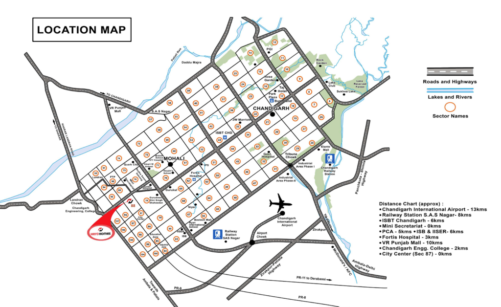 - Railway Station SAS Nagar – 8 km